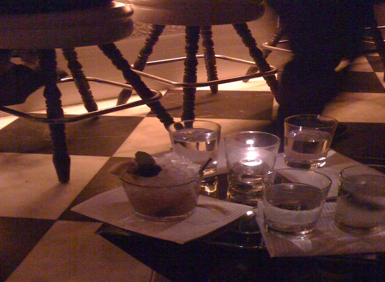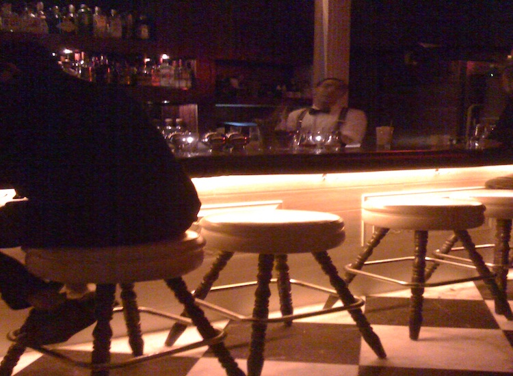 Once we sat down, we were given a menu with about eight drinks on it. We discovered we could also ask for any cocktail off the menu, except for drinks containing vodka (they don’t believe in that spirit there). The bartender that attended to us wore suspenders and an anachronistic mustache, just as you might suspect. He was friendly and filled us in on the story behind the bar and how they got started. Though the cocktails aren’t cheap ($13), they’re unique, enjoyable, and, when combined with the atmosphere, are definitely worth the price.