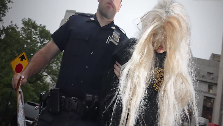 Amanda Bynes after her arrest in New York. (Screen shot from http://youtu.be/fMEn-_Rx5b8)