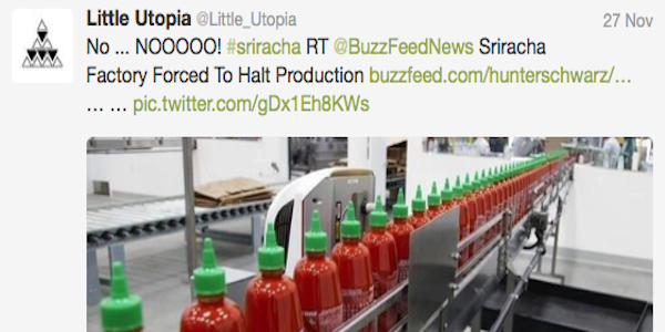 Last week, the news I had been dreading popped up on Little Utopia’s twitter feed: The Sriracha factory in Irwindale, California had been ordered to partially shut down by a judge. Needless to say, it was a devastating start to my day.